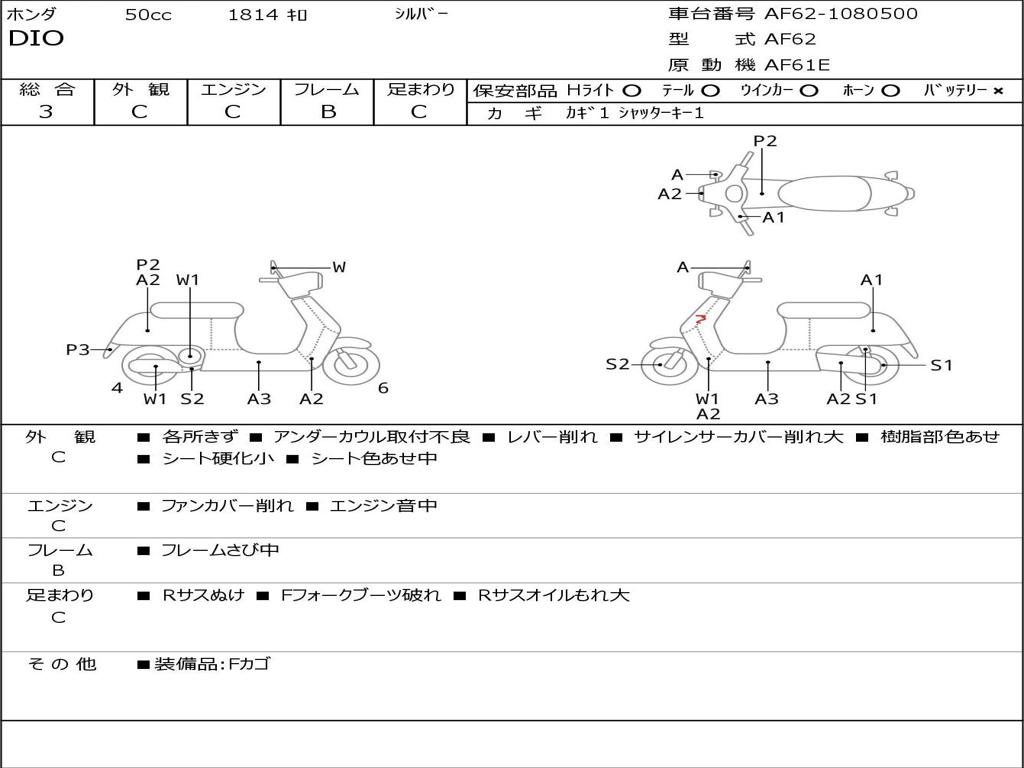 | Номер рамы / VIN | AF62-1080500 |