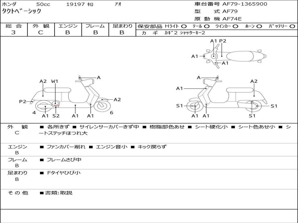 | Номер рамы / VIN | AF79-1365900 |
