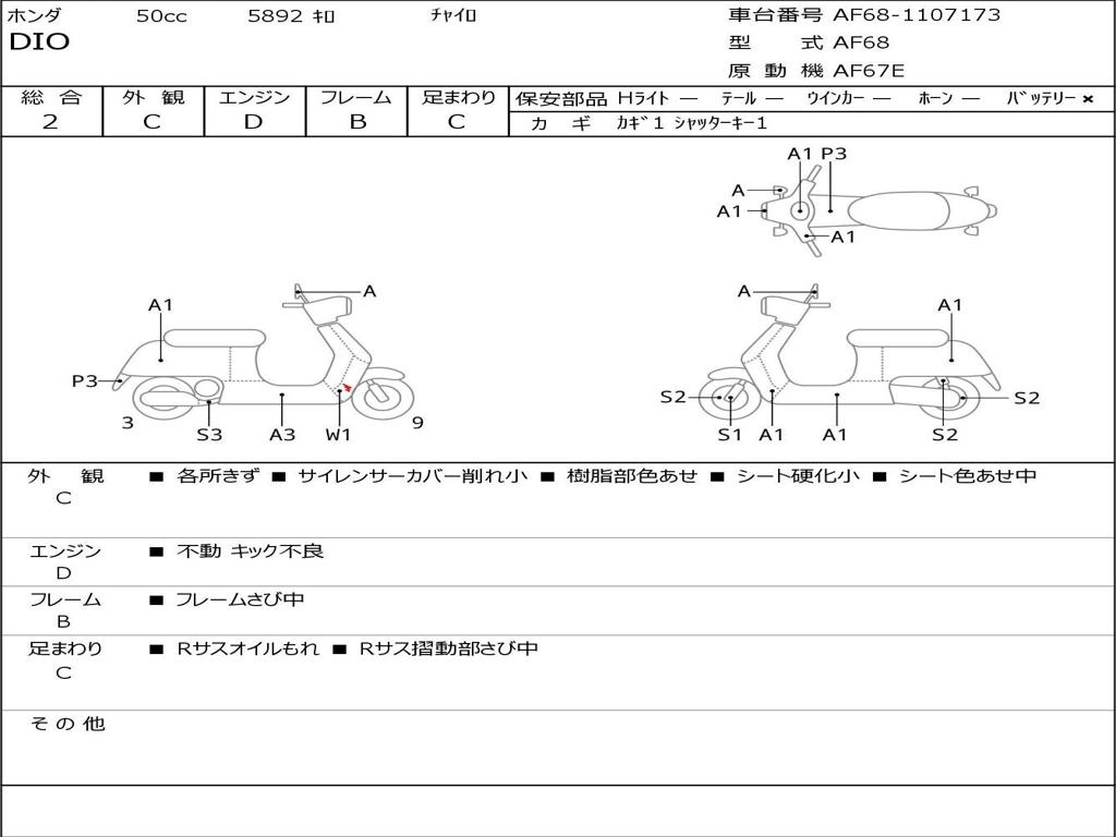 | Номер рамы / VIN | AF68-1107173 |
