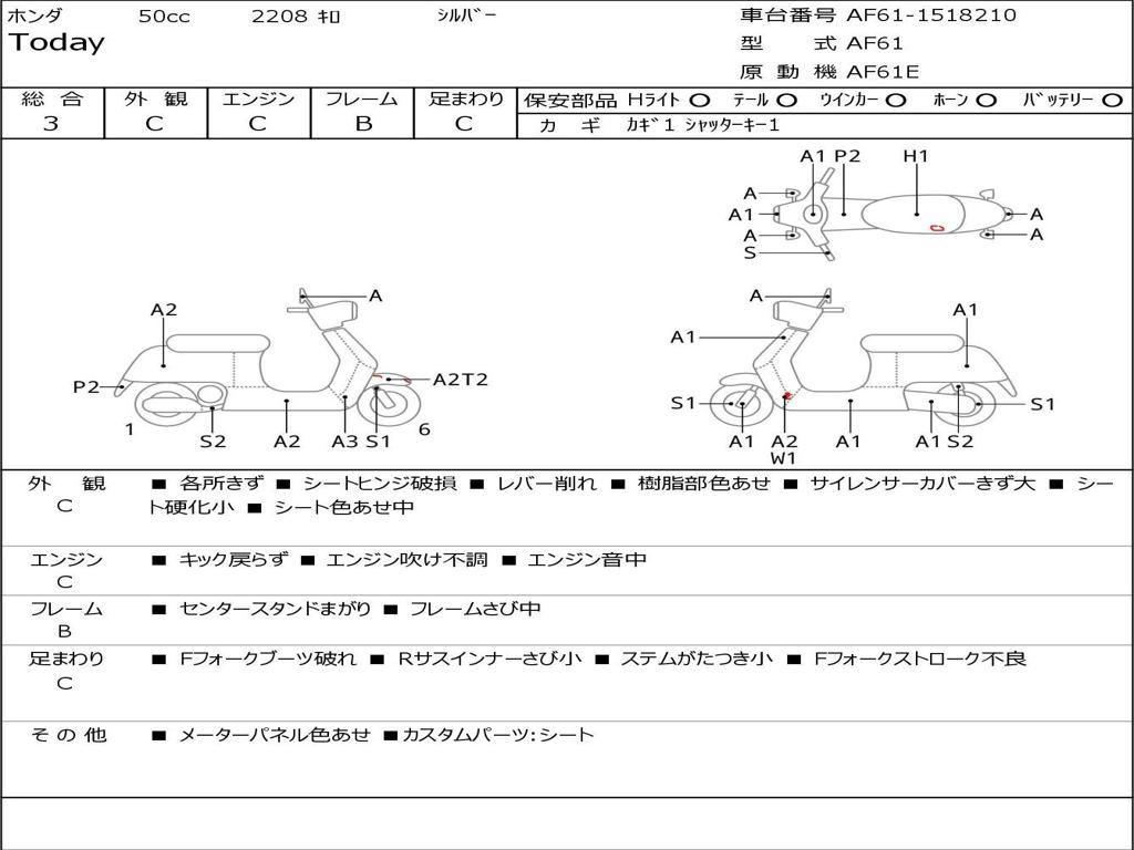 | Номер рамы / VIN | AF61-1518210 |