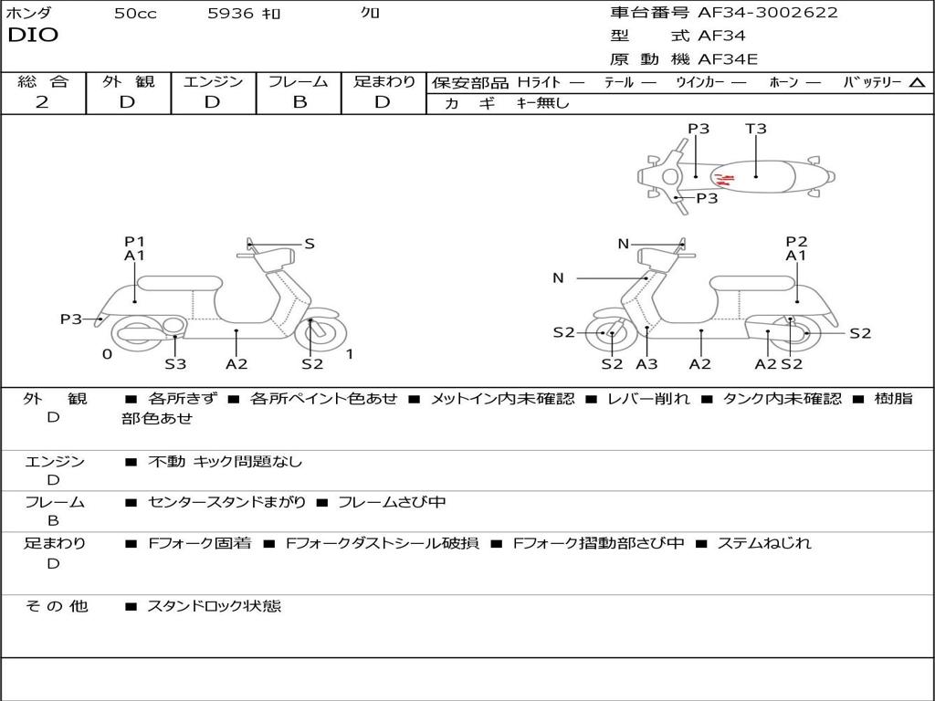 | Номер рамы / VIN | AF34-3002622 |