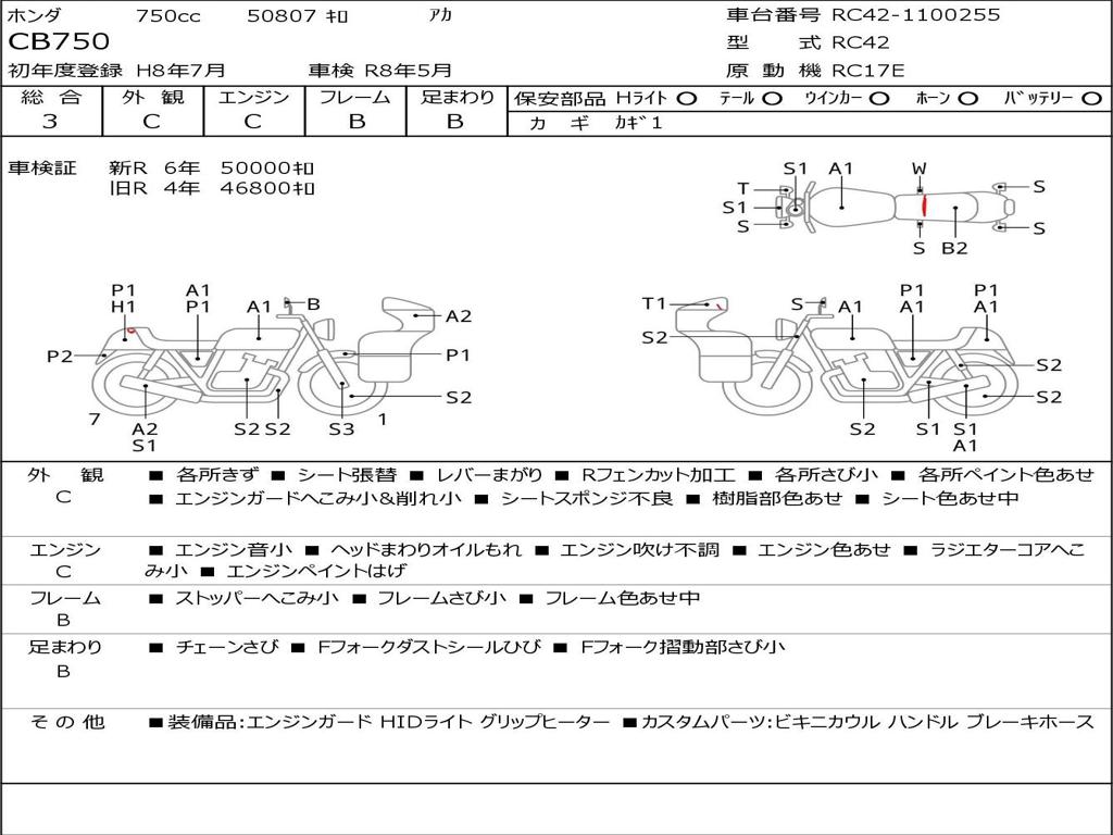 | Номер рамы / VIN | RC42-1100255 |