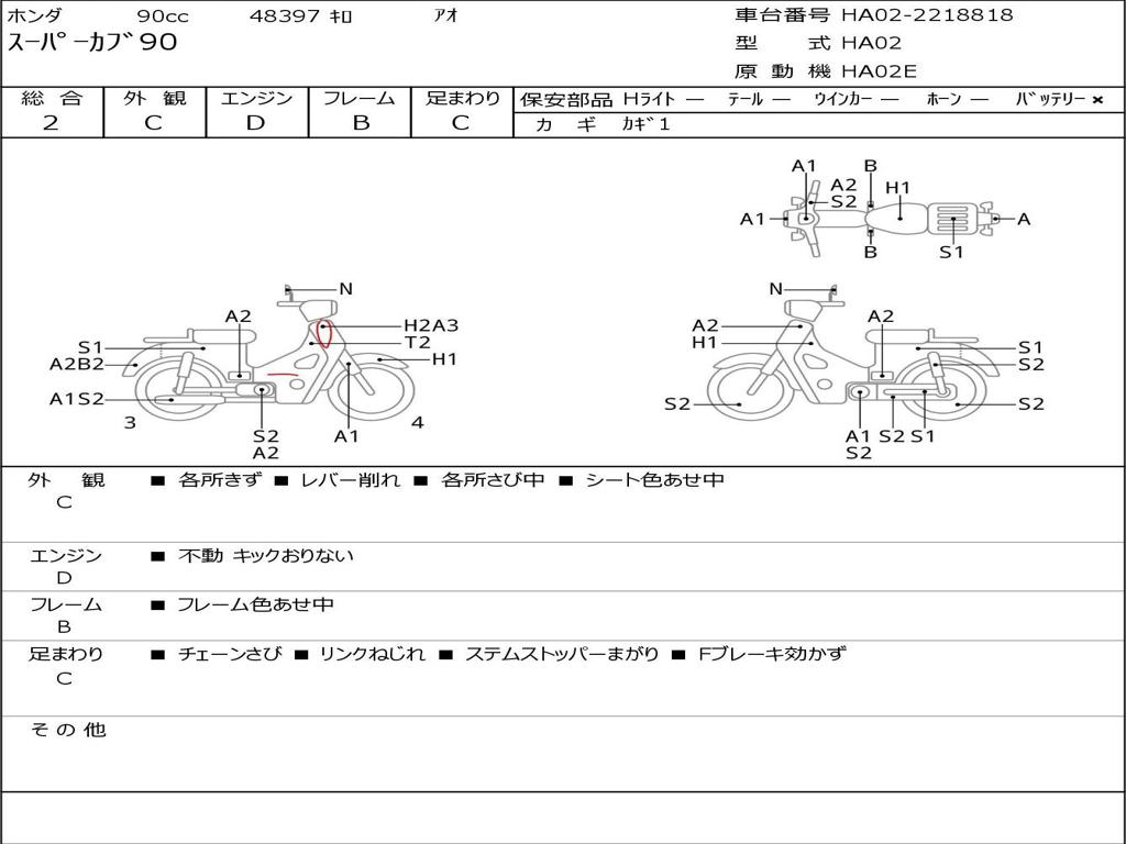 | Номер рамы / VIN | HA02-2218818 |