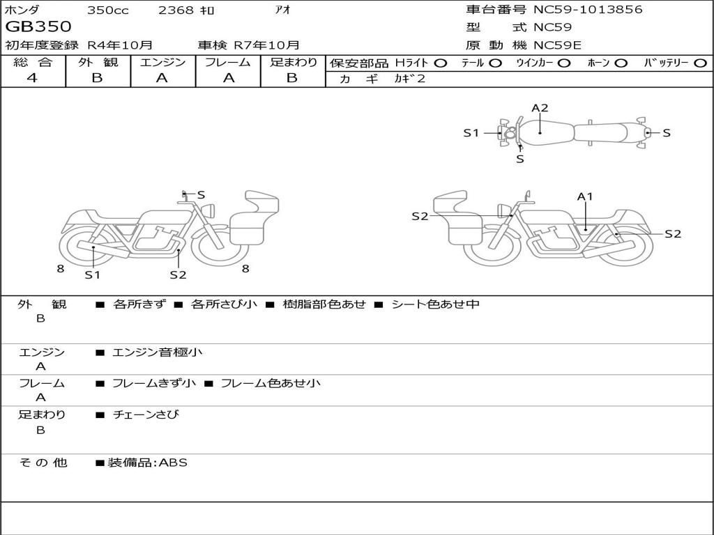 | Номер рамы / VIN | NC59-1013856 |