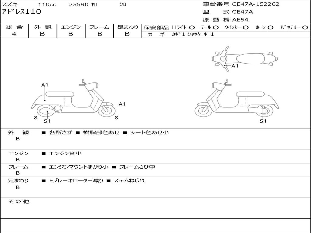 | Номер рамы / VIN | CE47A-152262 |