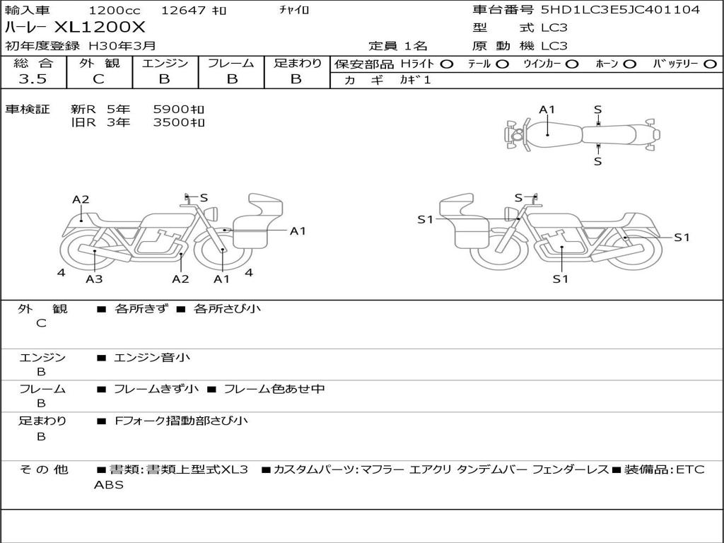 | Номер рамы / VIN | 5HD1LC3E5JC401104 |