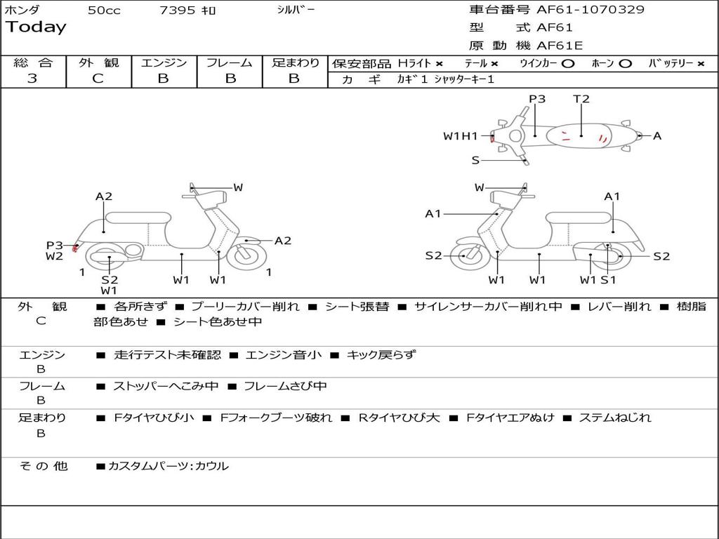 | Номер рамы / VIN | AF61-1070329 |