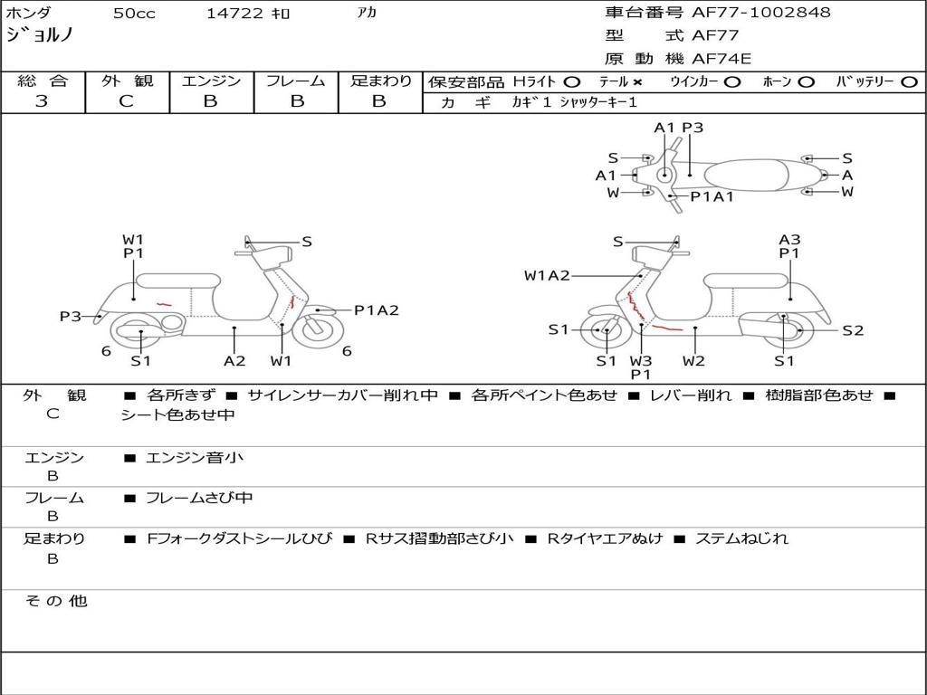 | Номер рамы / VIN | AF77-1002848 |