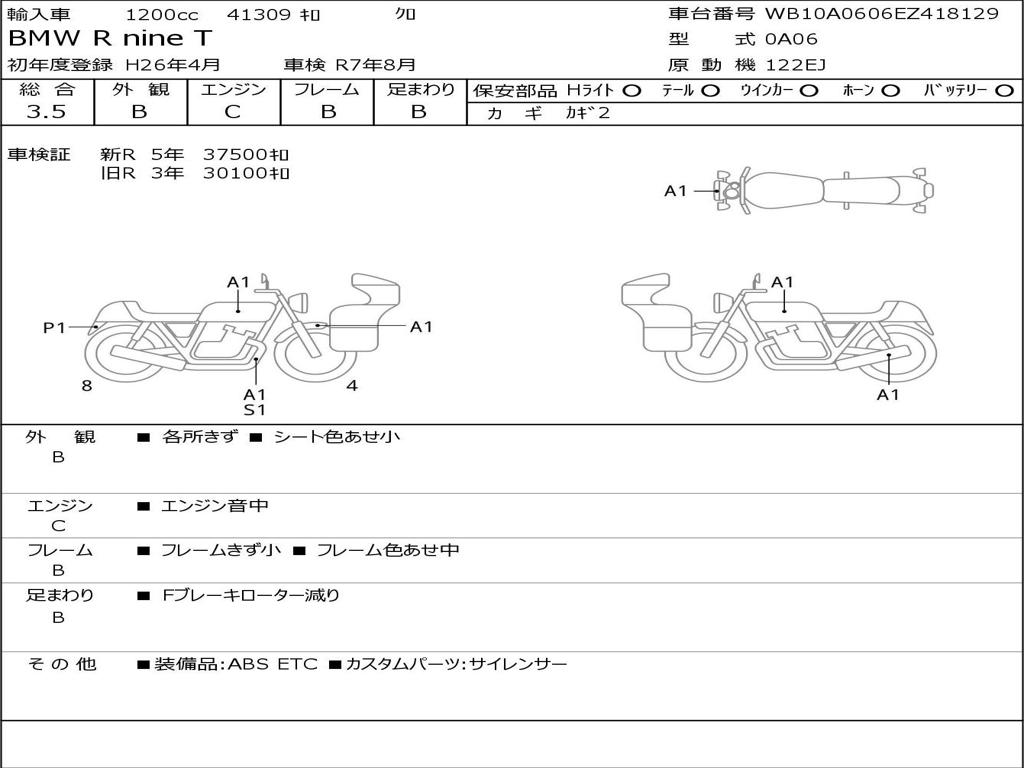 | Номер рамы / VIN | WB10A0606EZ418129 |