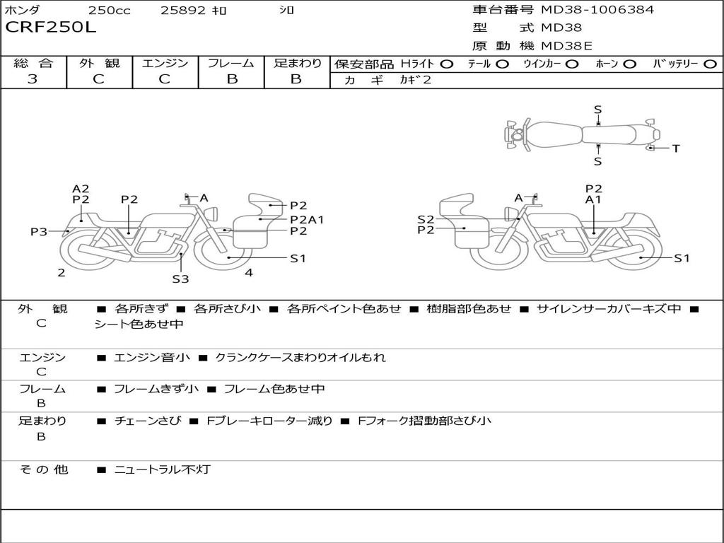 | Номер рамы / VIN | MD38-1006384 |