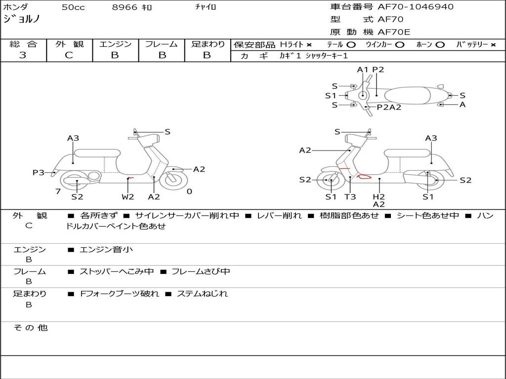 | Номер рамы / VIN | AF70-1046940 |