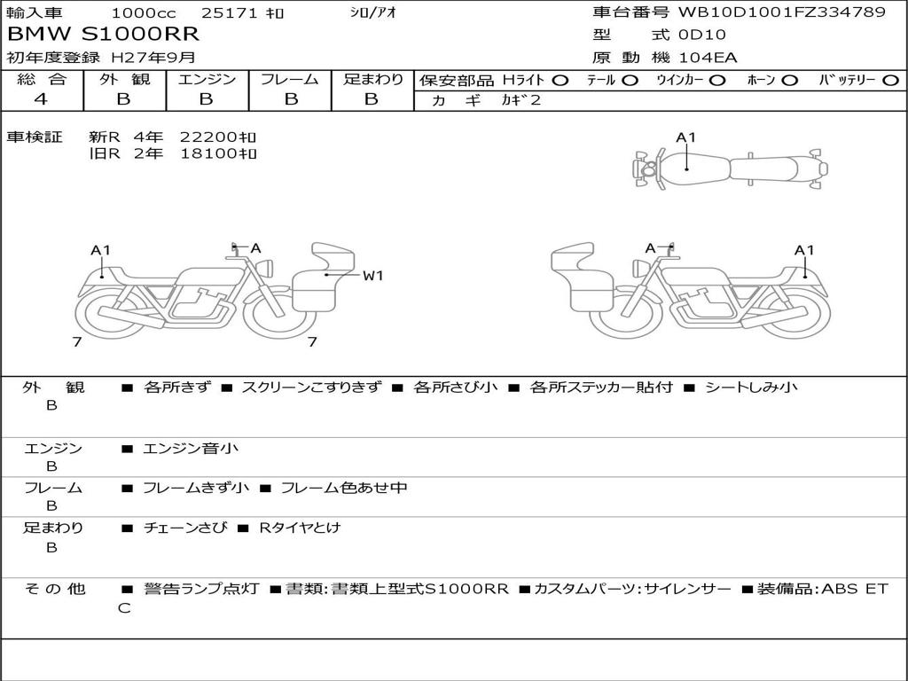 | Номер рамы / VIN | WB10D1001FZ334789 |