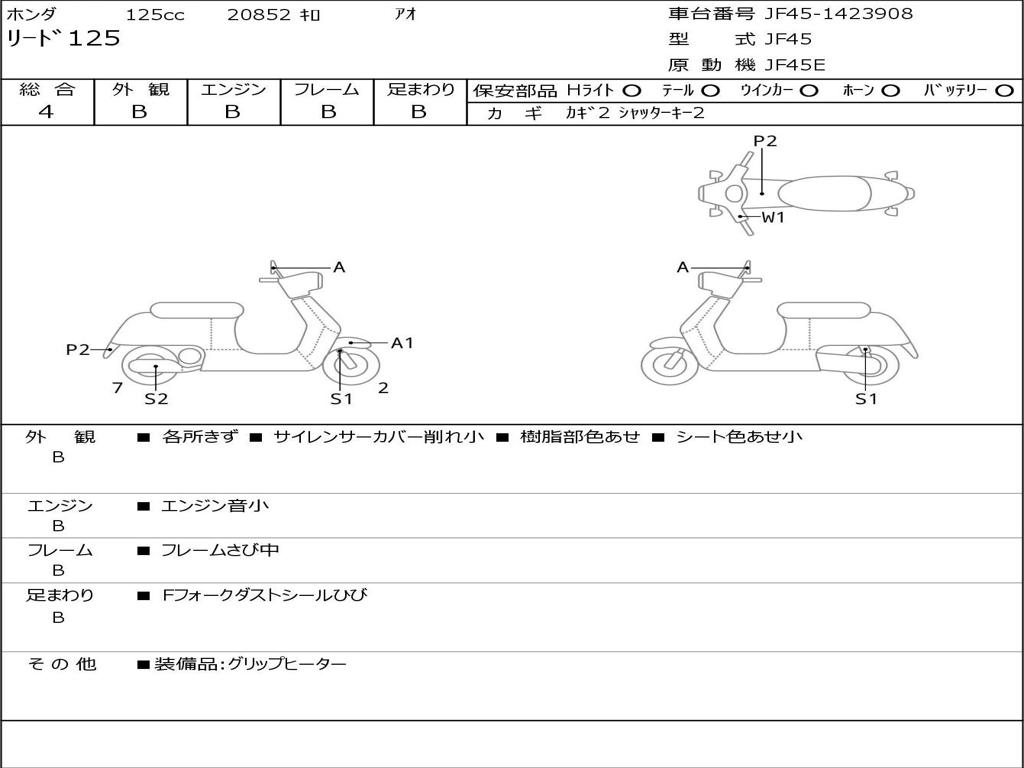 | Номер рамы / VIN | JF45-1423908 |