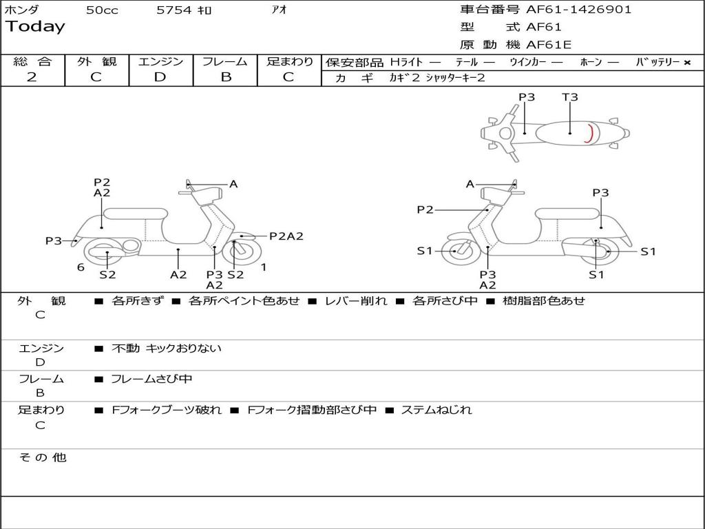 | Номер рамы / VIN | AF61-1426901 |