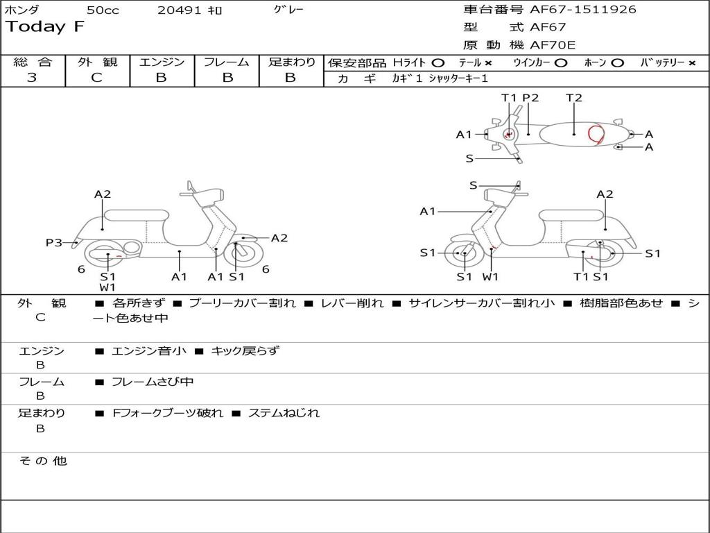 | Номер рамы / VIN | AF67-1511926 |