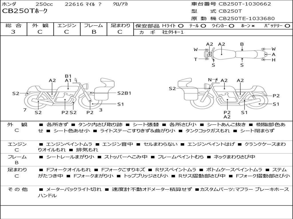 | Номер рамы / VIN | CB250T-1030662 |