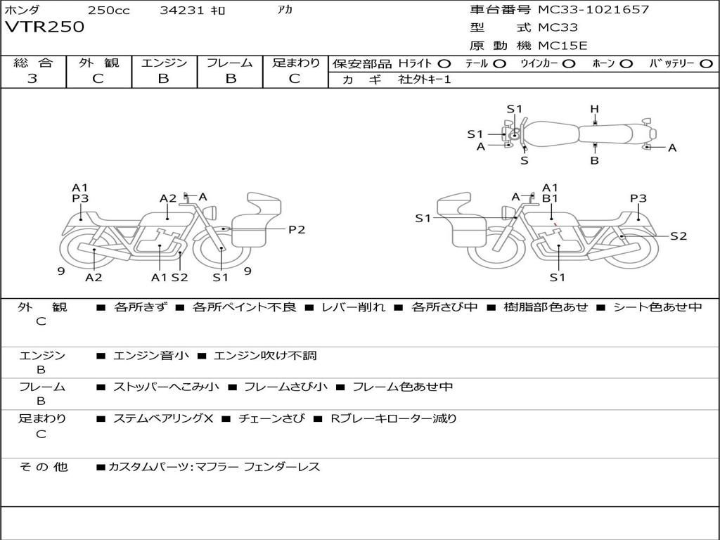 | Номер рамы / VIN | MC33-1021657 |