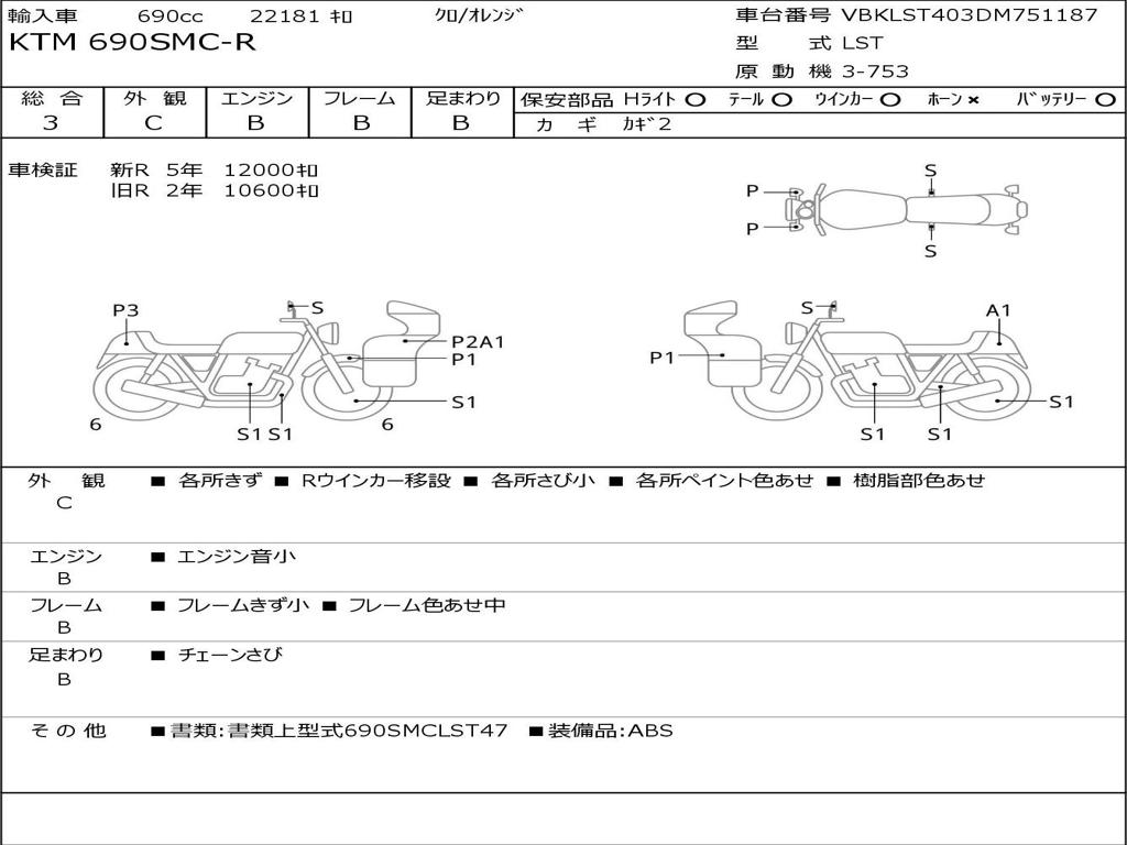 | Номер рамы / VIN | VBKLST403DM751187 |