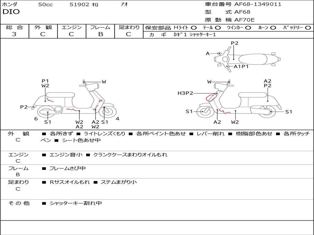 | Номер рамы / VIN | AF68-1349011 |