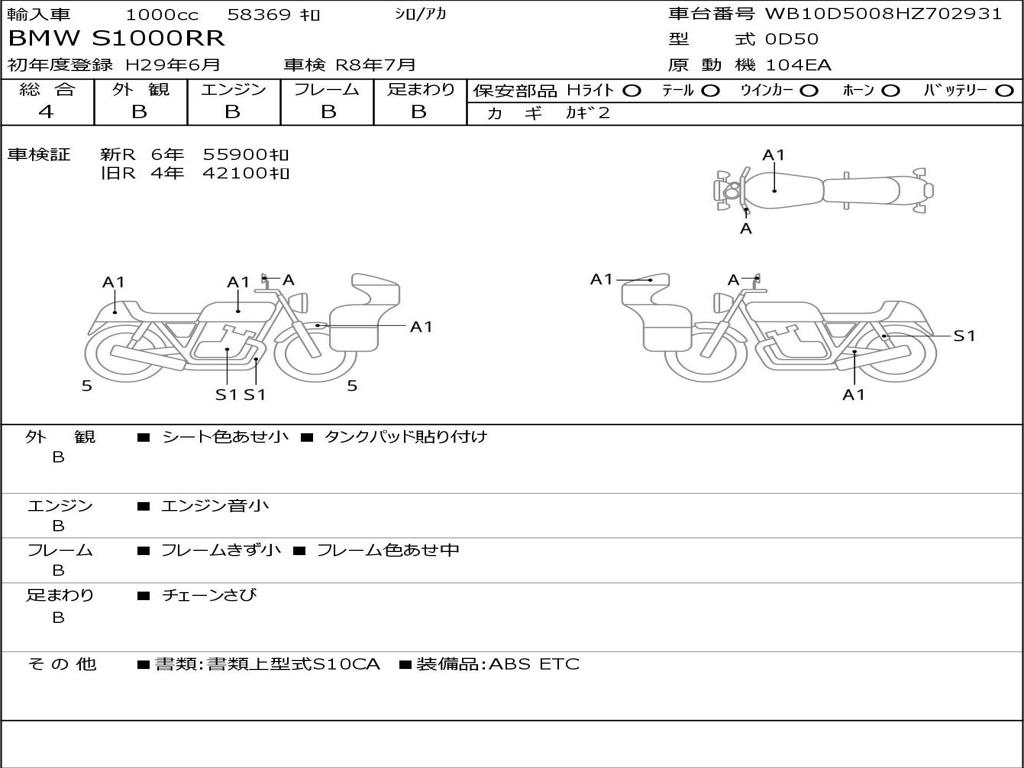 | Номер рамы / VIN | WB10D5008HZ702931 |