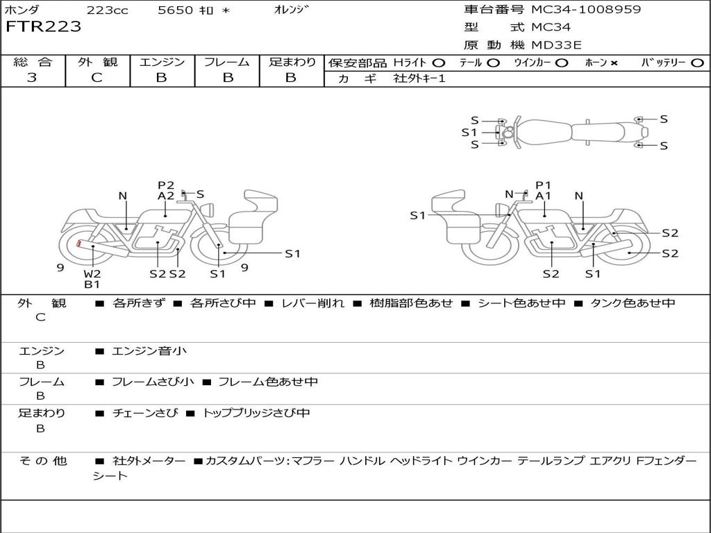 | Номер рамы / VIN | MC34-1008959 |