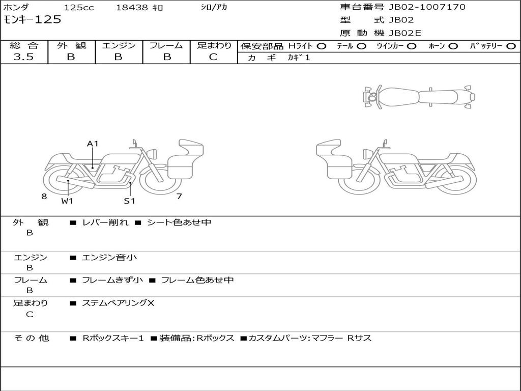 | Номер рамы / VIN | JB02-1007170 |