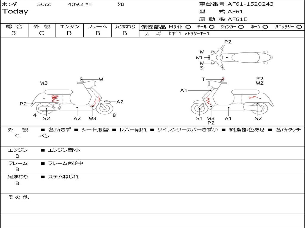 | Номер рамы / VIN | AF61-1520243 |