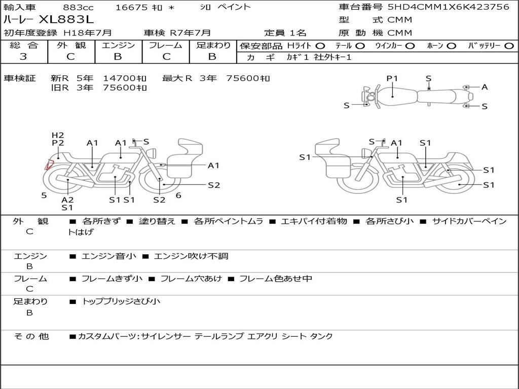 | Номер рамы / VIN | 5HD4CMM1X6K423756 |