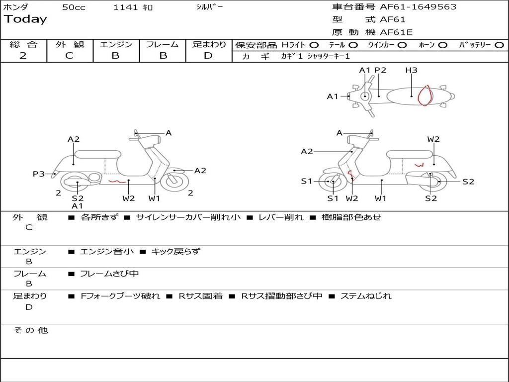 | Номер рамы / VIN | AF61-1649563 |