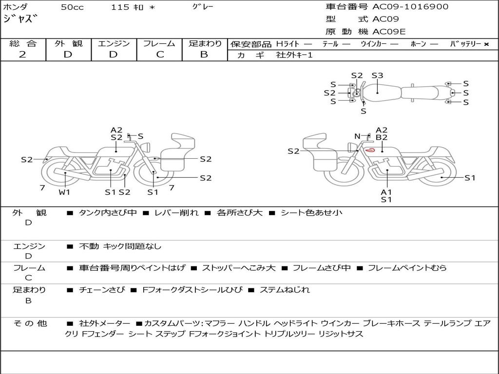 | Номер рамы / VIN | AC09-1016900 |