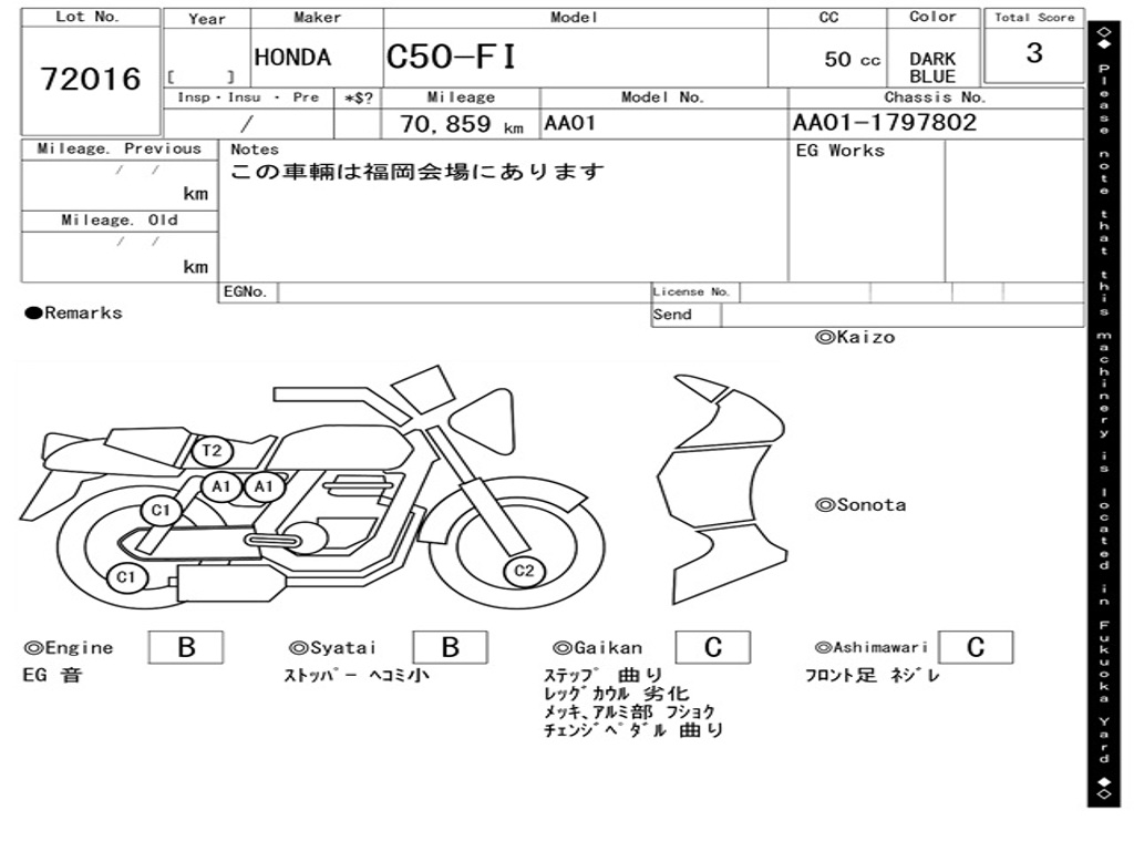 | Номер рамы / VIN | AA01-1797802 |