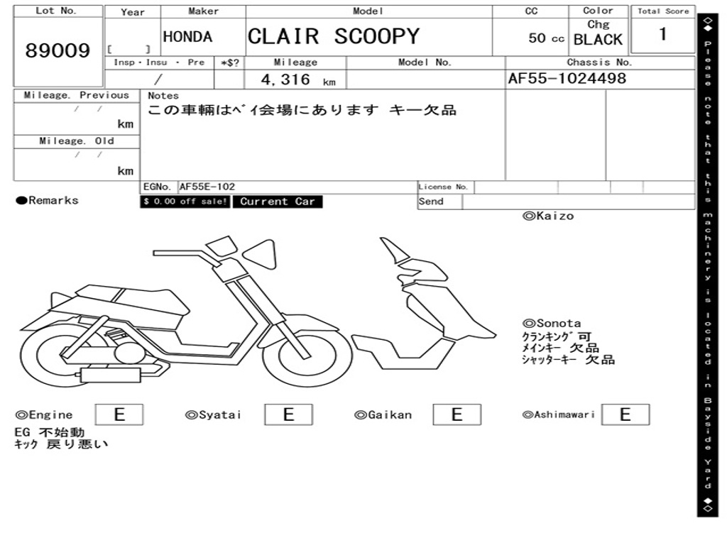 | Номер рамы / VIN | AF55-1024498 |