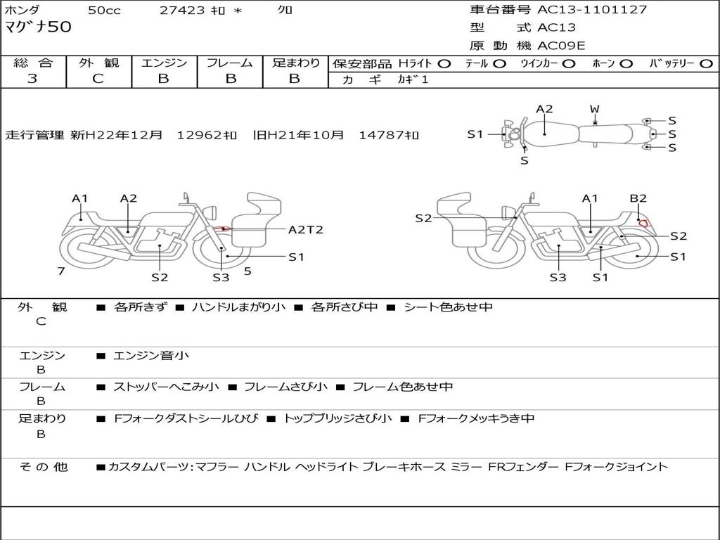 | Номер рамы / VIN | AC13-1101127 |