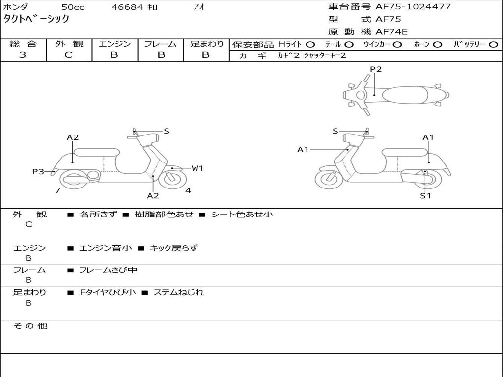 | Номер рамы / VIN | AF75-1024477 |