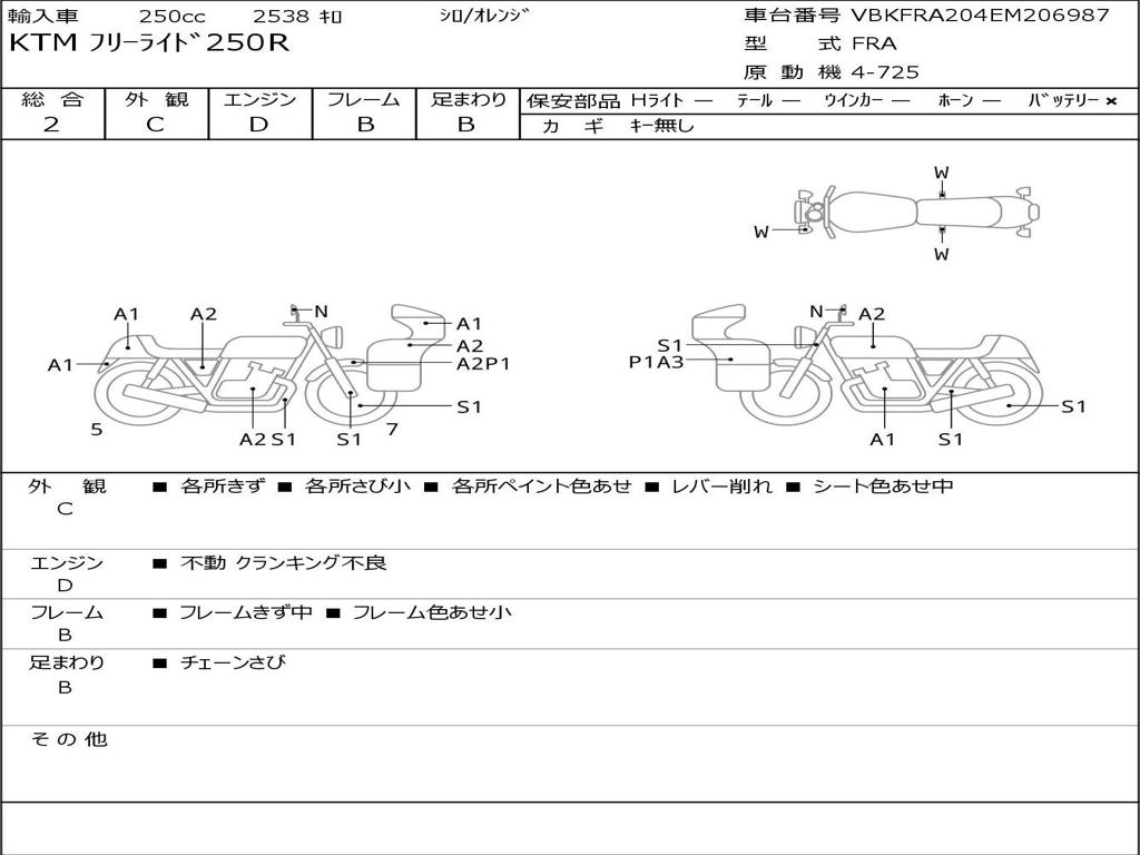 | Номер рамы / VIN | VBKFRA204EM206987 |