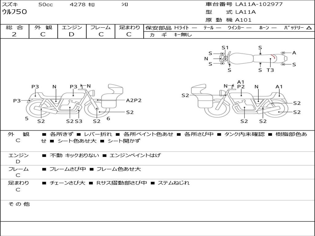 | Номер рамы / VIN | LA11A-102977 |
