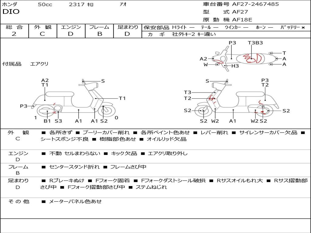 | Номер рамы / VIN | AF27-2467485 |