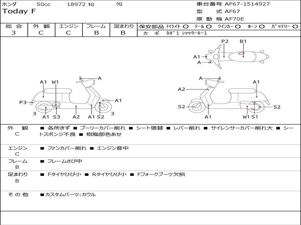 | Номер рамы / VIN | AF67-1514927 |