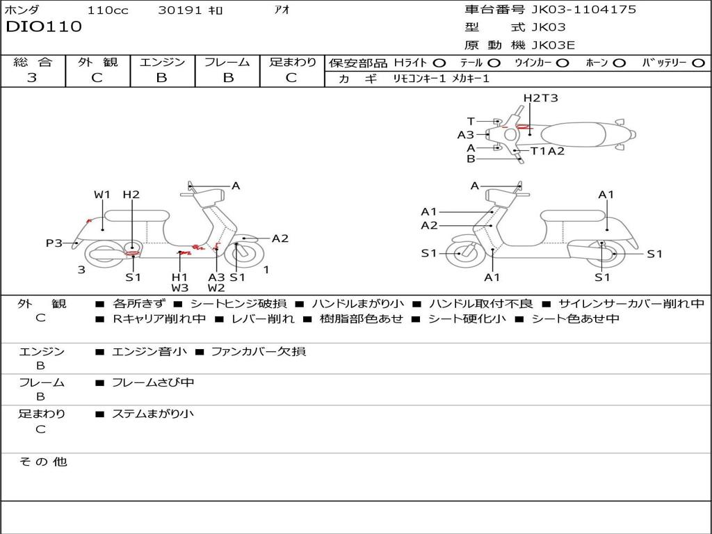 | Номер рамы / VIN | JK03-1104175 |