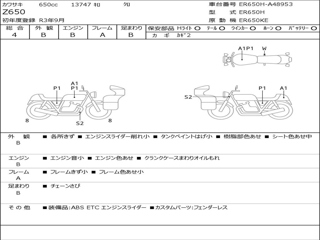 | Номер рамы / VIN | ER650H-A48953 |