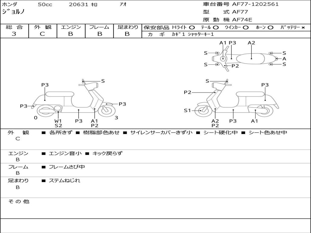 | Номер рамы / VIN | AF77-1202561 |