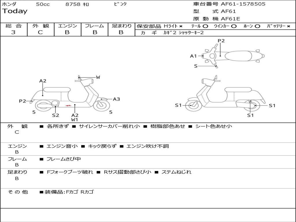 | Номер рамы / VIN | AF61-1578505 |