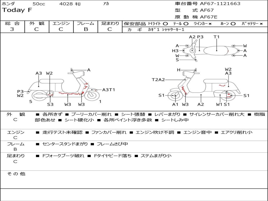 | Номер рамы / VIN | AF67-1121663 |