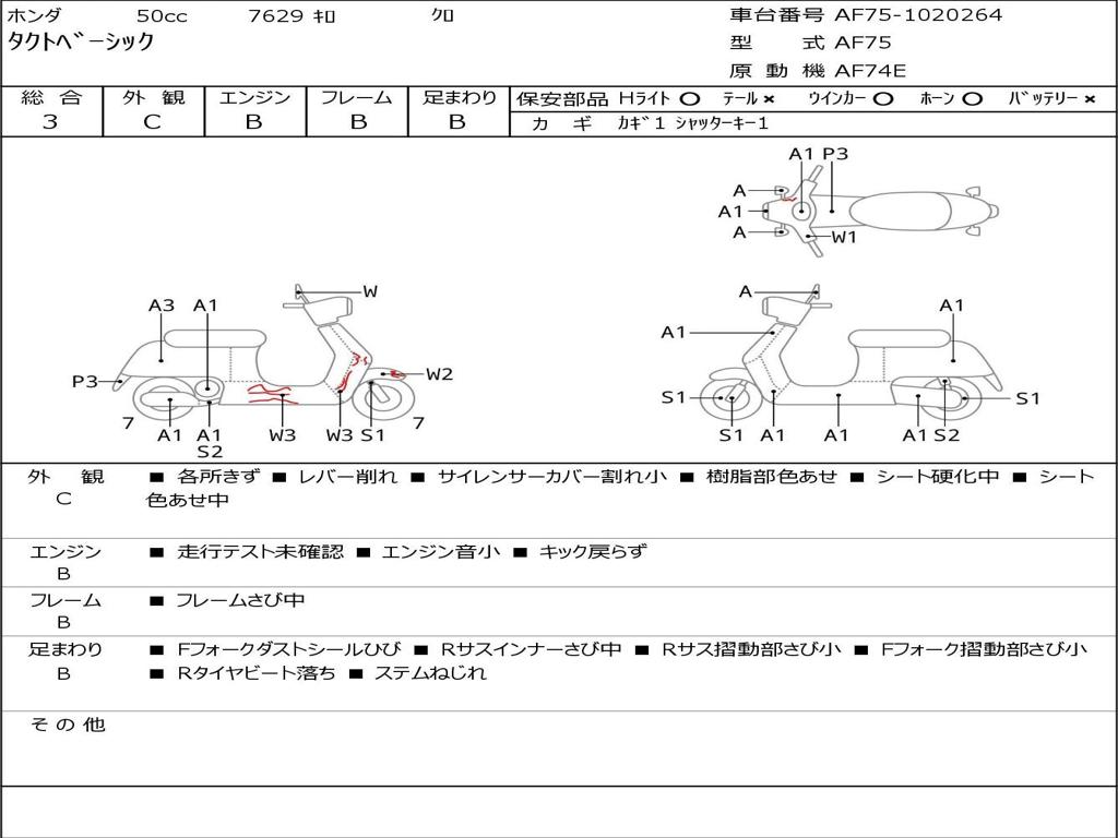 | Номер рамы / VIN | AF75-1020264 |