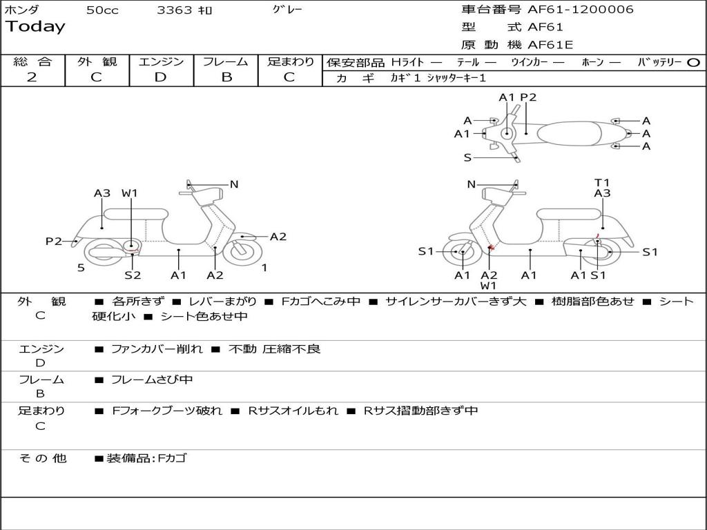 | Номер рамы / VIN | AF61-1200006 |