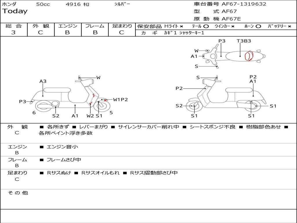 | Номер рамы / VIN | AF67-1319632 |