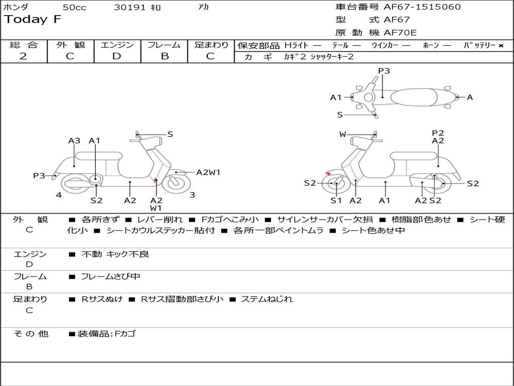 | Номер рамы / VIN | AF67-1515060 |