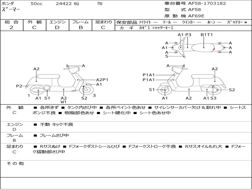 | Номер рамы / VIN | AF58-1703182 |