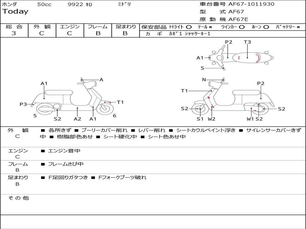 | Номер рамы / VIN | AF67-1011930 |