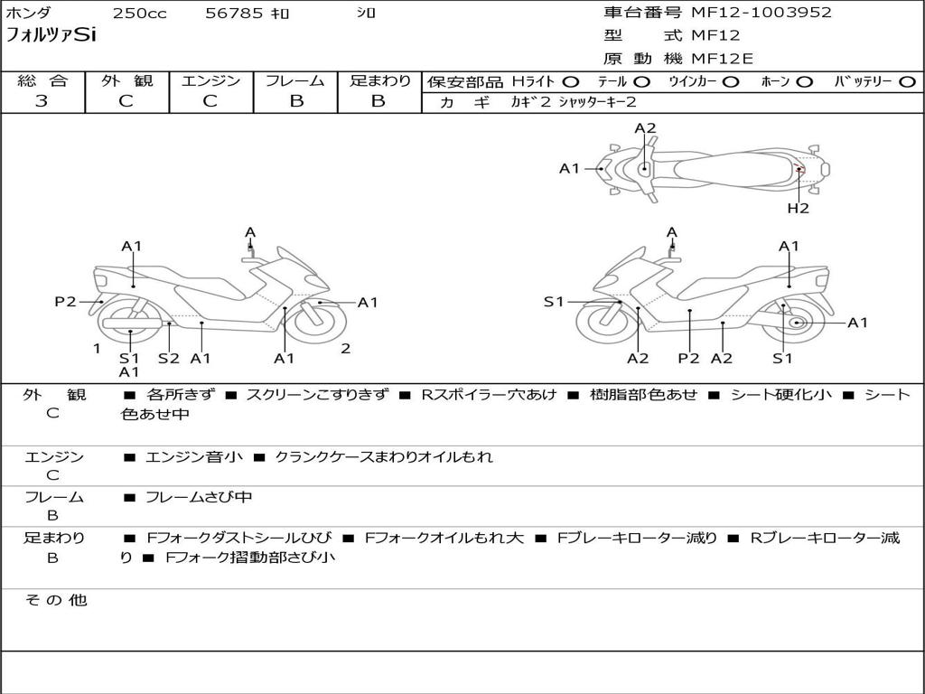 | Номер рамы / VIN | MF12-1003952 |